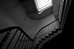 Schody. Sposób zmiany położenia na wyższe lub niższe. Płaskie półki umocowane do ściany lub osobnej konstrukcji. Czasami mają poręcz dla zabezpieczenia pasażera przed upadkiem. I już, nic więcej. „Koń, jaki jest, każdy widzi”. Więc co mnie napadło, żeby dobijać się do domofonów, serwować domownikom wymyślone historyjki (bo w prawdziwe nikt by nie uwierzył) i kłaść się na od lat nieodkurzanych podestach celem znalezienia lepszego kadru?